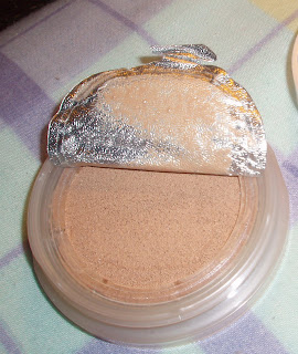 As you can see, it looks a bit strange, its a liquid foundation, which is contained in a foamy pad. I just press down with my fingers, and apply. Its quite light, and shimmery, and I actually really like it for summer. I even went back for a back up. All the make up comes in a purple packet, so this is what you need to look out for-