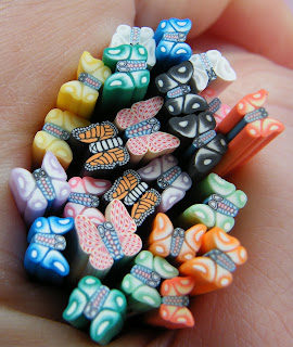 Instead of buying pre-sliced fimo, it is much cheaper to buy a big bundle of fimo canes and chop them yourself. I got mine from this seller, for a very reasonable £3.55 for 100 including postage. As they are coming from Hong Kong they take a couple of weeks to come, but thats no real biggie considering the bargain. As I am a geek, I bought a storage jar with different layers and divided the canes up according to type.
